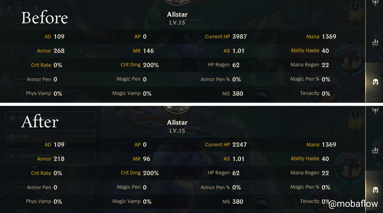 - Healthy baron reduces 2 Armor and MR per basic attacks.