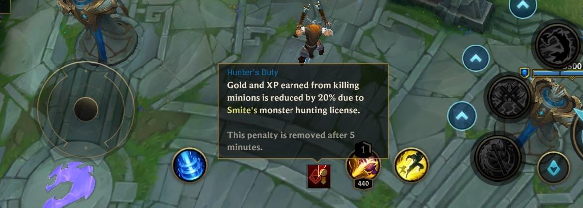 Hunter’s Duty effect timer is visible, which let’s players know how they get reduced gold from min ionss. Riot’s way of telling the junglers to stay in the jungle and not leach lane farm.