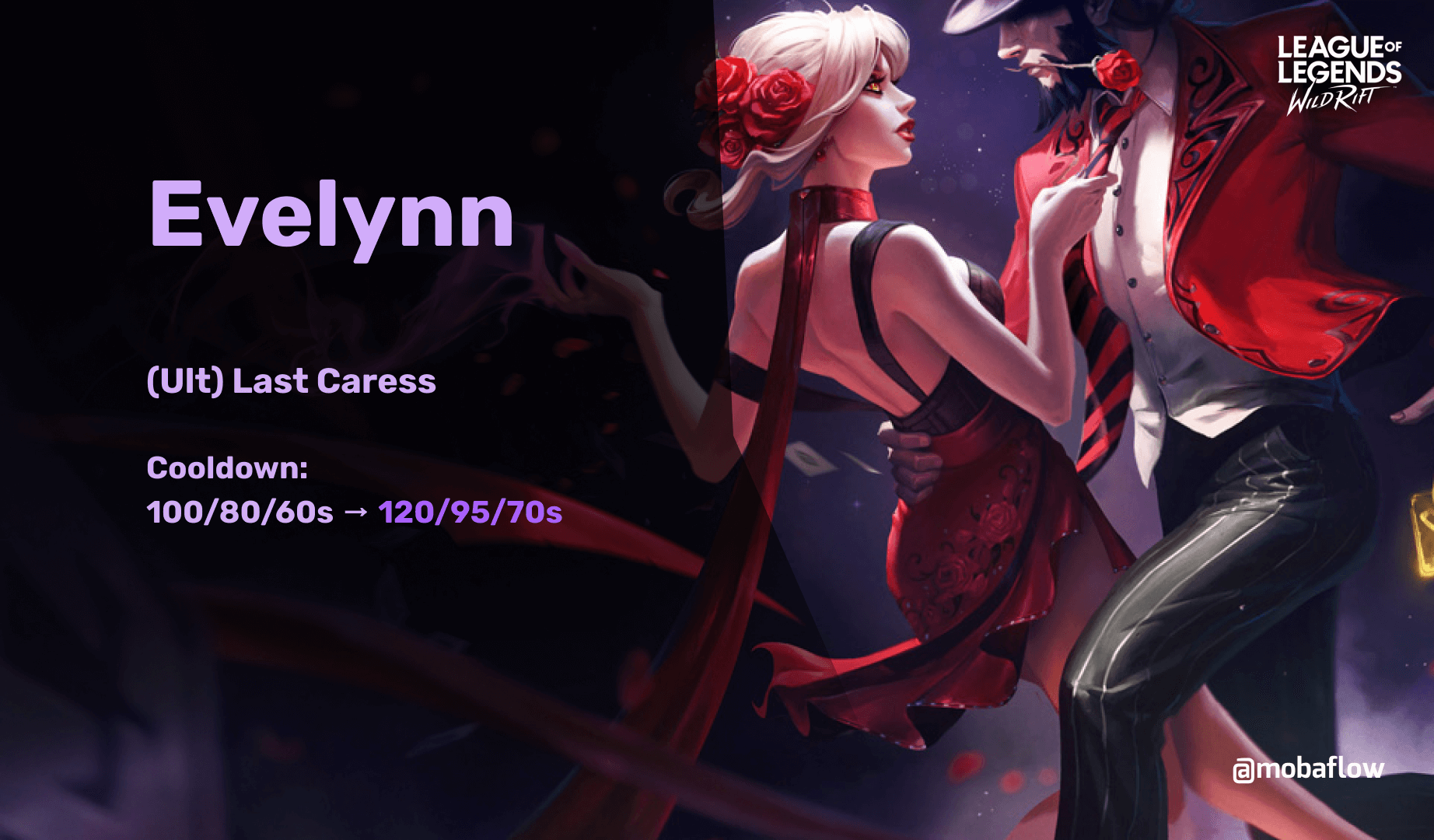 The ultimate is everything for Evelynn. Her combo does a whopping 3600 dmg to a baron with her ult. It is ridiculously difficult to take any objective as long as the Evelynn was alive. With a higher ult cooldown it might mean there more opportunities for the enemy team especially in solo queue.
